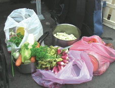 Bon Marché After the vegetable market we collect the leftovers and use them to cook ourselves a menu, which we eat on site.