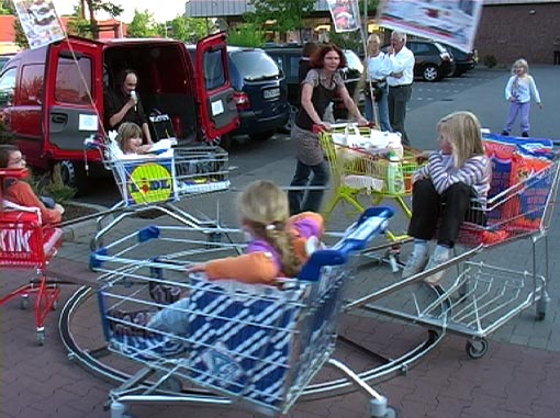 Pushing the trollies keeps the carousel running. Along a monotone melody,