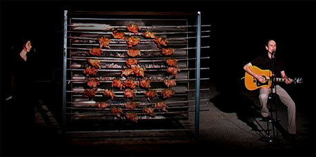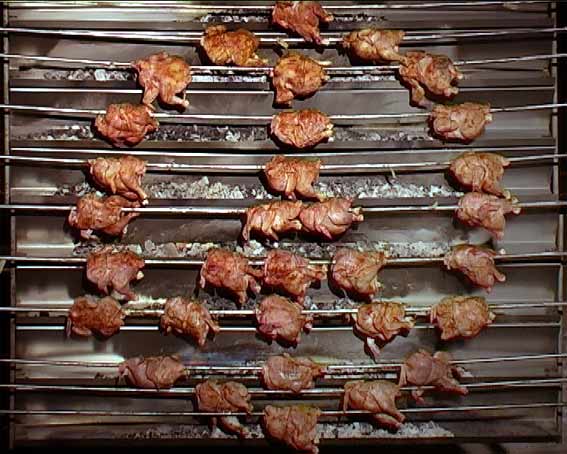arrangierte Hähnchen. Vor dem Verzehr singen wir