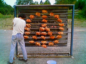 Der dafür gebaute Grill fasst 32 zum Peace-Zeichen