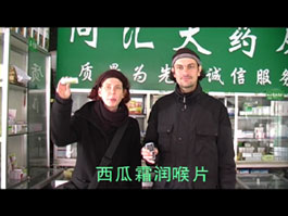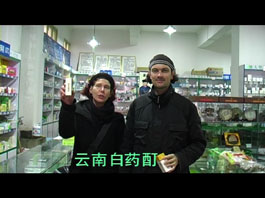 Auf Straßen und Feldern finden wir leere Medizin-Verpackungen. Aus den Namen der einzelnen Medikamente komponieren wir ein Lied und singen es zum Klingelton unseres Handys in verschiedenen Apotheken in Lijiang. Video 3´00´