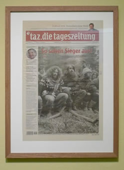 In einem der Räume des Bunkers lagern wir einen Block der 'taz - die tageszeitung'