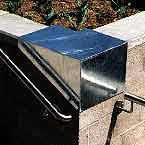 For the edge of this parapet at the entrance of a subway station I manufactured a galvanized steel cap. | Without having been fixed, the steel cap lies there for many years now. |