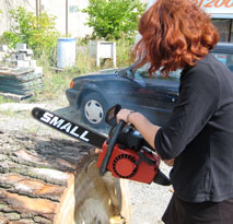 Make No $mall Plans Schrift auf Leuchtbox, Betonwand, Kettensäge und Ziegelfassade Montréal-Griffintown Kanada 2008