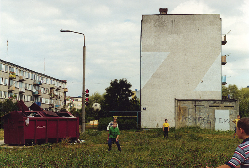 des Jungen in der Bildmitte (czyms), der fensterlosen Hausfassade (z) und